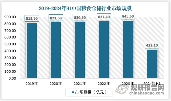 近年来,中国粮食仓储行业市场规模持续扩大。跟着国度对粮食平安的日益注沉以及农业现代化历程的加速,粮食仓储设备的扶植和升级获得了鼎力推进。同时,跟着物联网、大数据、云计较和人工智能等手艺的不竭成长和使用,数字化仓储正在粮食仓储行业中的使用也日益普遍,进一步鞭策了市场规模的增加。2023年,我国粮食仓储行业市场规模曾经达到845。6亿元,2024年上半年达到422。1亿元。