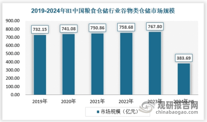 近年来我国谷物类仓储市场连结不变增加,2023年我国谷物类仓储市场达到767。8亿元。具体如下!