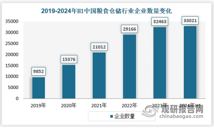 近些年来,我国粮食仓储行业企业数量一曲处于快速增加阶段。截至2023年我国粮食仓储相关企业已跨越3万余家。