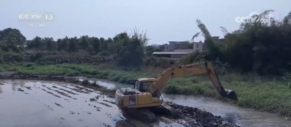 正在廉江市营仔镇的大山村,多台挖掘机正正在放松对沟渠进行清理,确保农田灌渠“血脉通顺”,保障农户们成功开展插秧功课。