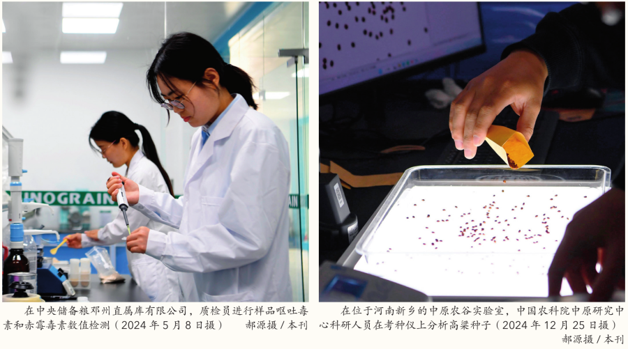 一马平川的麦田里,农人正忙着灌溉、打药;尝试室里,多个品种的小麦正正在健壮发展,人工天气室实现小麦“一年五熟”,大大缩短育种周期;麦田上空,专职“飞手”操控的无人机正喷洒农药……7000多年前,河南新郑市的裴李岗村便呈现了粟、黍、稻的种植,被誉为中华农耕文明发源地,现在,这里所正在的黄淮海平原仍然是我国粮食出产焦点区。河南通过良田、良种、良法、良机、良制“五良”融合,大面积提拔单产,不懈巩固粮食这个焦点合作力。良田是粮食出产的“命脉”。受全球天气变暖影响,我国近年极端气候、灾祸频发,进一步改善农田根本设备前提,持续提拔农业防灾减灾能力,成为保障粮食平安的沉中之沉。启动高尺度农田示范区扶植。2022年,正在高尺度农田扶植根本上,河南打算用三年时间,投资500亿元,扶植1500万亩高尺度农田示范区。河南省农业农村厅相关担任人说,今岁尾将完成此轮高尺度农田示范区扶植,实现规模化运营程度高、现代化配备和智能化程度高、耕地地力提拔高、防灾减灾能力强、农产物产出质量劣等“三高一强一优”扶植方针。鼎力推进节水灌溉,破解“粮水矛盾”。河南安阳,“90后”种粮大户张先智一部手机操控着三台“庞然大物”,一台465米长的平移式从动喷灌机,两台半径130米的指针式从动喷灌机,前者笼盖面积约300亩,后者每台笼盖约80亩。“现正在灌溉太便利了,指针式喷灌机日夜不断转,两天两夜就浇完80亩小麦,平移式的只能白日浇,5天浇完300亩。”张先智说,“比以前洪流漫灌的体例节水30%摆布。”河南是北方严沉缺水省份,人均水资本不脚400立方米,不到全国平均程度的1/5,阶段性干旱时有发生,水资本严沉欠缺成为影响粮食稳产的“大变量”。正在高尺度农田扶植中,河南鼎力推进低压管灌、喷灌、微灌等高效节水灌溉工程扶植,正在部门高尺度农田项目区内推广利用平移式喷灌机、指针式喷灌机、卷盘式喷灌机、微喷带灌溉等高效节水灌溉模式。完美排水沟渠,实现田间节水灌排系统完美、工程配套、操纵充实,使灌溉率达到80%以上,防灾减灾能力显著提高。目前,河南已成长高效节水灌溉3636万亩。扶植数智大脑,鞭策科学耕田。正在新乡市平原示范区的高尺度农田示范区,不只、渠、井修得层次分明,很多地头还多了一根杆,叫“聪慧合杆”,杆上挂载着高清摄像头、景象形象设备、杀虫灯、信号收发器等安拆,还毗连着地里的土壤传感器,能够丈量分歧深度的三层土壤的温度、湿度、酸碱度等消息。这些消息城市被传输到“华夏农谷数智大脑”中,通过数据大模子的计较,将景象形象、墒情、苗情、病虫情等消息发送给农人。位于新乡市的“华夏农谷”是河南倾力打制的农业科创平台,它是一个分析尝试场,以育种为焦点,兼顾农业消息化和高尺度农田扶植。新乡市130多根集成杆、10多个监测坐以及相关卫星的数据络绎不绝地输入“华夏农谷数智大脑”,目前数据已跨越2亿条。“这是一个用工业互联网思维来提拔农业消息化程度的立异之举,我们具有气候、土壤、肥力、动物蒸腾等四个数据大模子,它们还正在锻炼傍边,逐渐摸清相关纪律。”“华夏农谷数智大脑”项目司理尹玥说。河南正在多地开展高尺度农田消息化的摸索和尝试,借帮大数据,提高对景象形象灾祸、病虫害的预警能力。截至2024岁尾,河南累计建成高尺度农田8808万亩,约占全省1。13亿亩耕地总面积的78%,约占全省9915万亩永世根基农田总面积的88。8%,粮食出产抗灾减灾能力大幅提高。“藏粮于地、藏粮于技”,善用科技力量让华夏这片耕种了数千年的地盘变成了“伶俐田”,也将农业的“芯片”——种子牢牢控制正在本人手里。加强育种攻关,打制中国种业“华夏力量”。扶植种业立异平台,实施种业立异攻关。依托神农种业尝试室和国度生物育种财产立异核心等平台,集聚国表里高端种业立异资本开展育种攻关。取荷兰瓦赫宁根大学、崖州湾国度尝试室、市农林科学院等共建育种结合尝试室、试验示范、一体化财产等。开展环节手艺攻关。河南省财务投入1亿元支撑神农种业尝试室开展育种根本攻关研究。目前,神农种业尝试室组建了小麦、玉米、花生、芝麻、大豆、家禽、基因编纂手艺等7支固定研发团队,设立了4个研究、2个中试和,取得了一批原创性科研,创制了一批优良新种质,选育了82个农做物新品种。河南通过打制环国度生物育种财产立异核心创重生态圈,汇聚省级以上立异平台58家、种业研发团队53支,引育隆生平物、杨凌秦丰等种业企业82家,引进两院院士16名、科研人才390人。标识表记标帜、功能基因集成等手艺的使用,使育种愈加速速精准,已培育新品种跨越100个。实施种业企业扶优,加强良种繁育能力。颠末持续攻坚克难,中国农业科学院华夏研究核心、中国农业科学院做物科学研究所研究员鹏团队培育出了“普冰03”小麦新品种,操纵远缘杂交手艺,将野活泼物冰草中的高产、抗病等基因导入小麦,使小麦品种具有高产、稳产、多抗的特点,是我国第一个国审小麦取冰草属间远缘杂交的新品种。2024年10月,河南省华夏农谷投资运营无限公司以666万元的价钱取得“普冰03”的新品种权让渡。河南省华夏农谷结合种业无限公司总司理范永胜说,“本年打算推广到2。5万亩地摆布,次要是种子田;来岁打算推广到30万亩摆