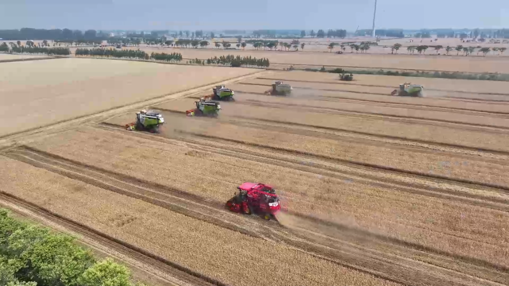 夏收获功,离不开智能收割机帮手。记者正在河南省南阳邓州市腰店镇看到,一望无垠的金色麦田里麦浪阵阵,机声隆隆。6台小麦结合收割机正一字排开,正在麦田中“过招”,比拼机收减损程度。这场机收减损技术大交锋勾当标记着本地小麦送来大面积机收。