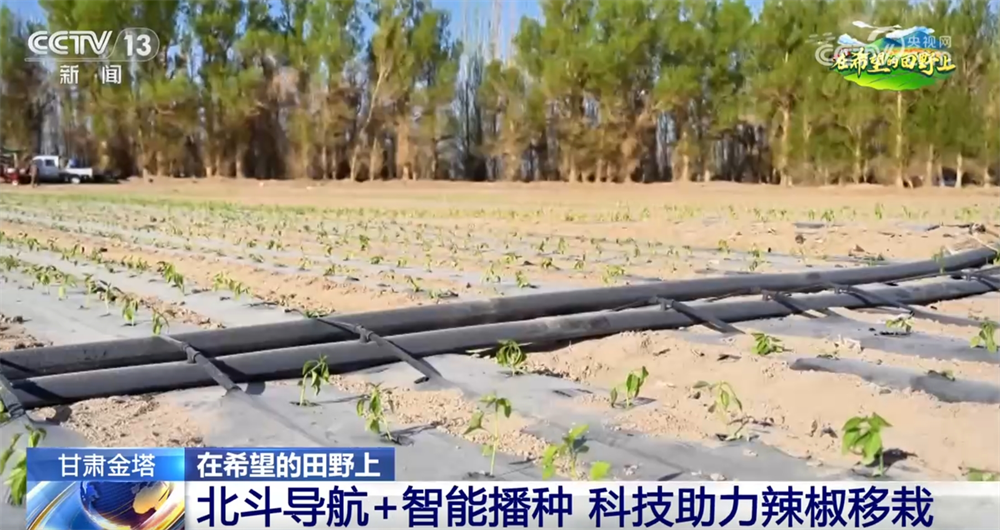 正在金塔县的一个农场,无人驾驶拖沓机牵引移栽机正在田间平稳行进,打孔、栽苗,一次就能完成辣椒的移栽。搭载斗极系统的农机通过预设线完成尺度化功课,为辣椒苗铺设精准“发展跑道”。农户告诉记者,以往种植时存正在起垄不曲、劳力不脚、效率低等问题。现正在有了新农机,每株辣椒都有平衡的发展空间,还加强抗倒伏能力,辣椒苗成活率大幅提拔。